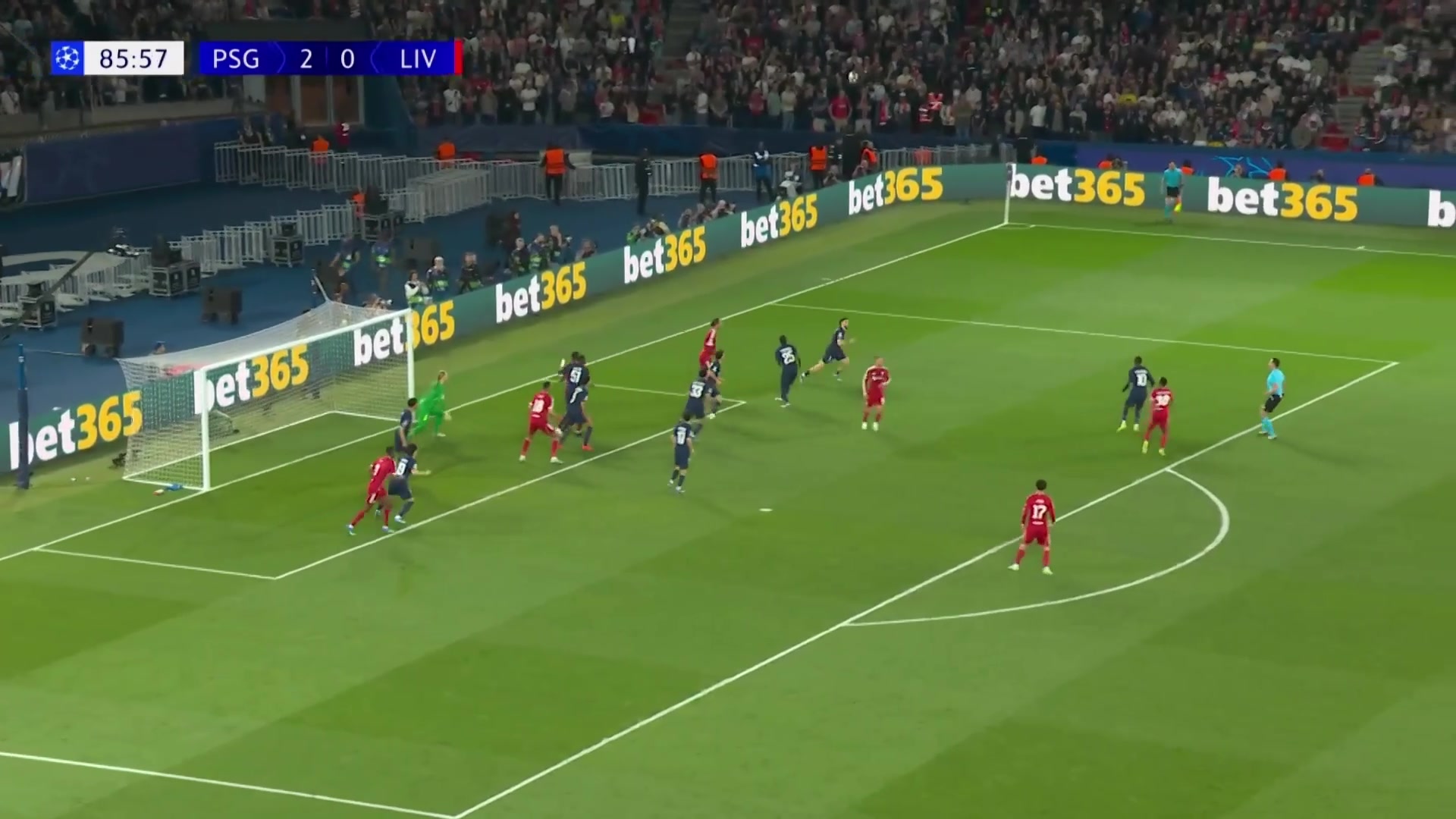 门将绝望杜埃打门变线无解诡异弧线破门巴黎1-0领先利物浦