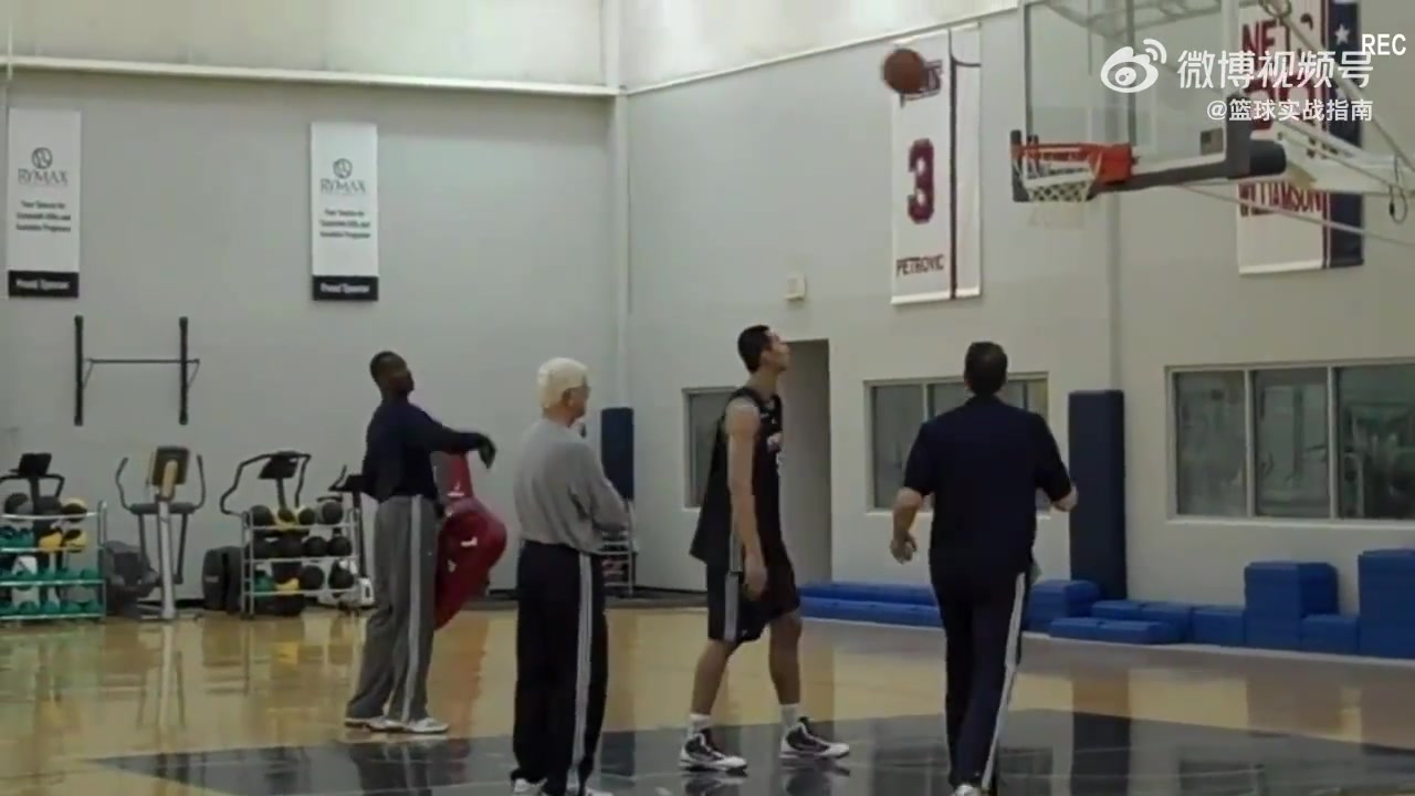 篮网时期的寸头易建联在教练组指导下训练篮下技术