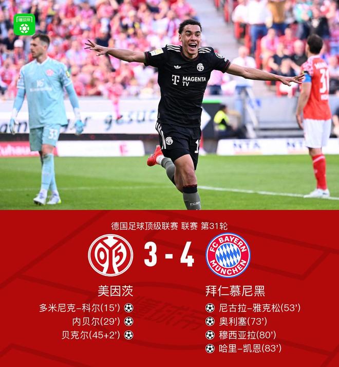 剑南春丨拜仁让三追四4-3美因茨,奥利塞、穆西亚拉、凯恩替补破门