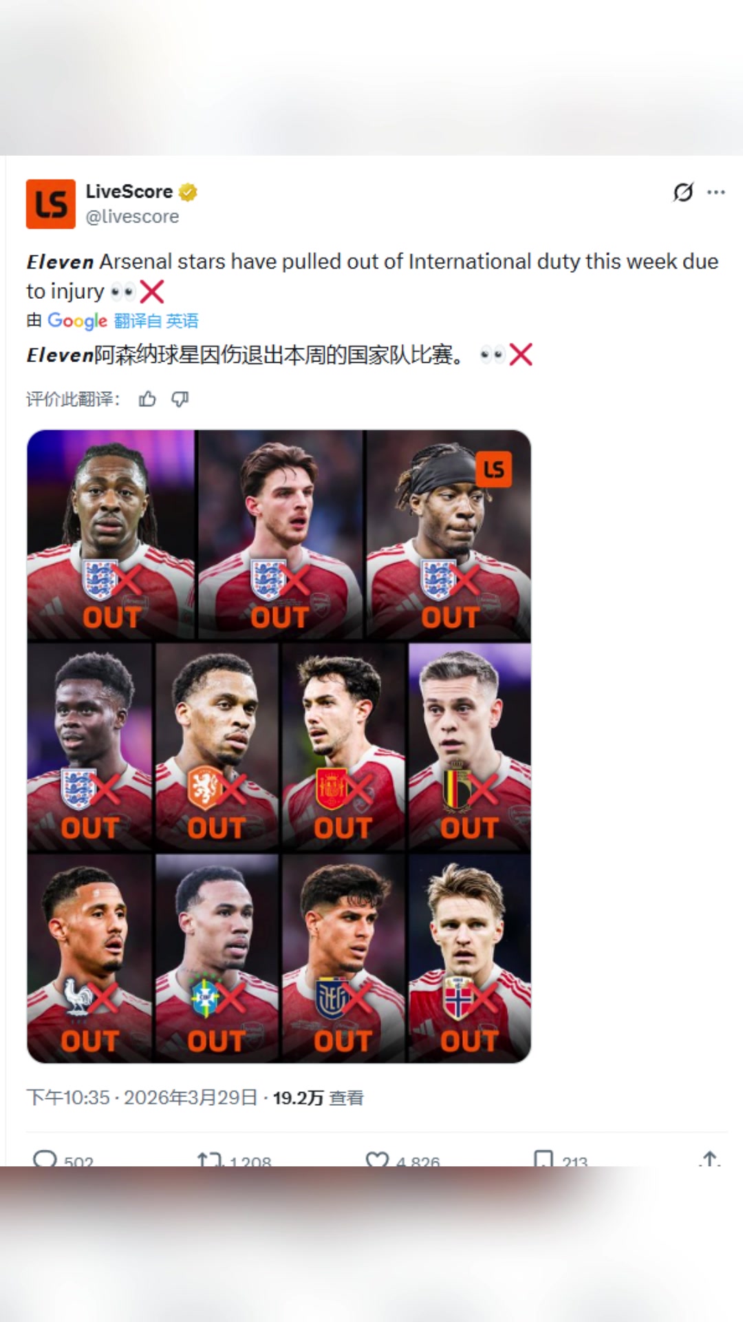 24直播网天塌了阿森纳众多球员因伤退出本周的国家队比赛